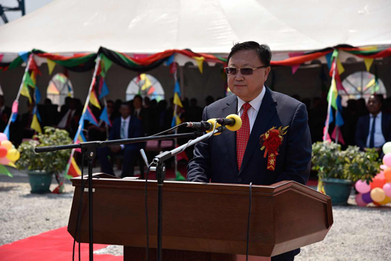 贊比亞總統(tǒng)倫古在儀式上發(fā)表重要講話