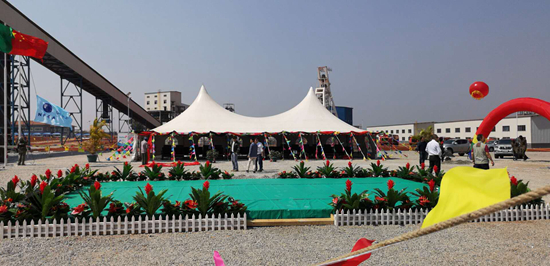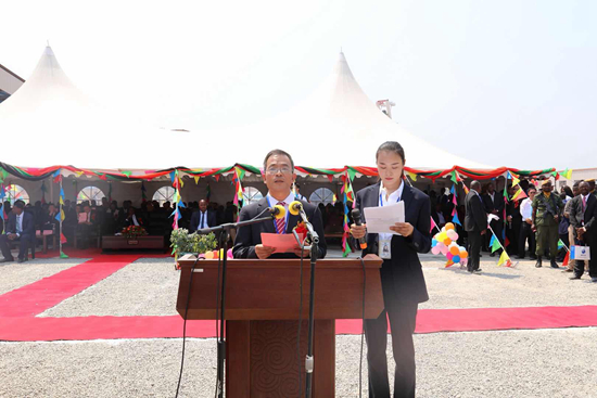 倫古總統(tǒng)和王彤宙董事長為投產紀念牌揭牌