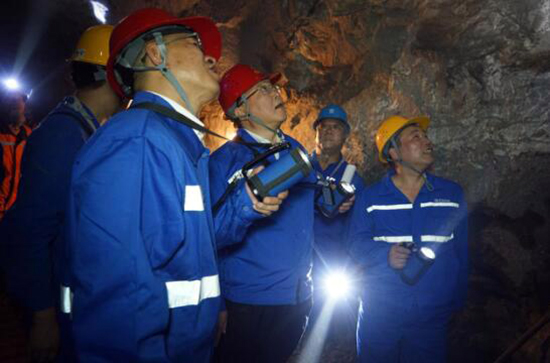 2019年10月21日,中國有色集團黨委書記、董事長王彤宙深入出資企業(yè)井下作業(yè)現(xiàn)場開展融入式調研。